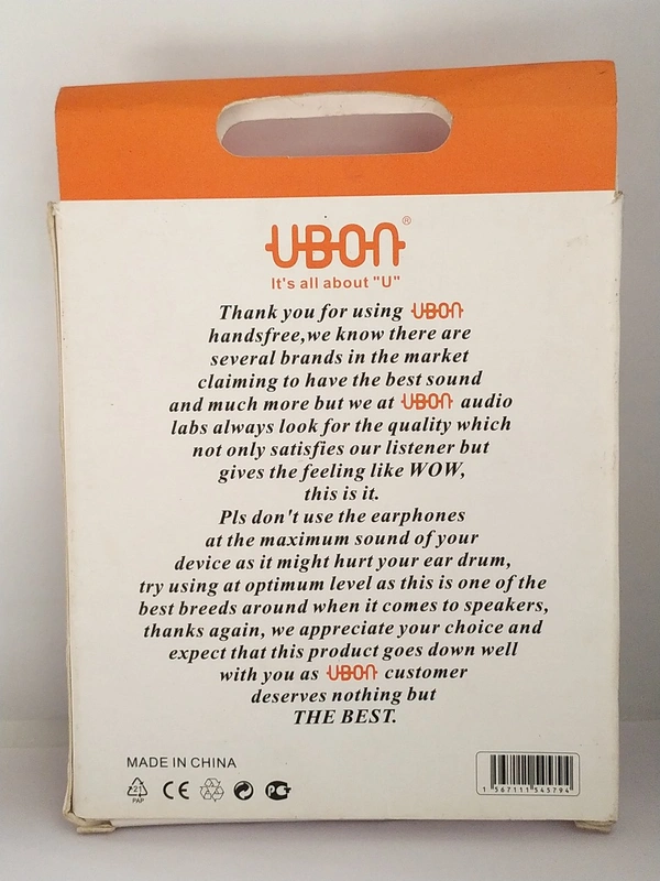 UBON It's All About U, Features, Power Beats, Crystal Clear Sound, 100%Satisfaction And Granted Quality, Anti Noise Speaker, Specially Designed Cable And Earphone Shape, Eco Friendly